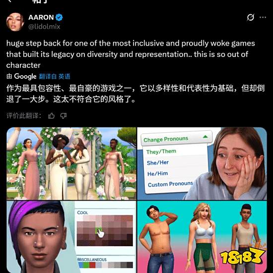 也有人对《模拟人生》的前景感到忧虑:“《模拟人生》一直是一款非常包容的游戏,想到他们可能会回退这些进步、甚至审查游戏,真的让我感到害怕。这样的改变会疏远整个《模拟人生》玩家群体,我认为这对新投资者来说将是极其愚蠢和短视的决定,必然适得其反。”