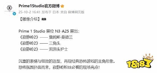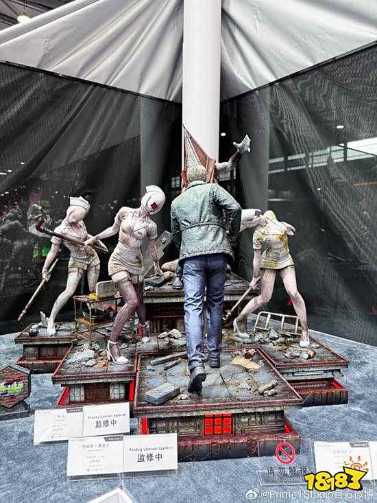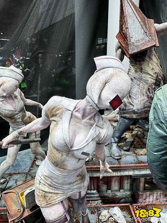 Prime 1 Studio于2025年10月2日通过官方微博正式发布《寂静岭2》主题收藏级雕像系列,涵盖主角詹姆斯·桑德兰、经典怪物三角头(Pyramid Head)及泡泡头护士三款核心角色。雕像高度还原游戏原设细节,詹姆斯的面部表情与服装褶皱、三角头的金属质感大刀及护士的血液污渍纹理均采用高精度涂装工艺,搭配主题地台营造沉浸式恐怖美学,定位高端收藏市场,发售时间与价格待公布。