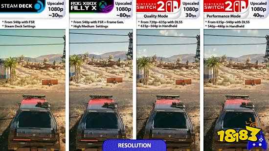 然而,在1080p等低分辨率下,FSR的表现不如DLSS。因此在原始分辨率较低时,游戏在Switch 2平台的运行效果会更佳。