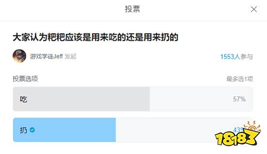 截止发稿,Jeff发起的投票已有1553人参与,其中57%认为应该可以吃,43%投给扔。