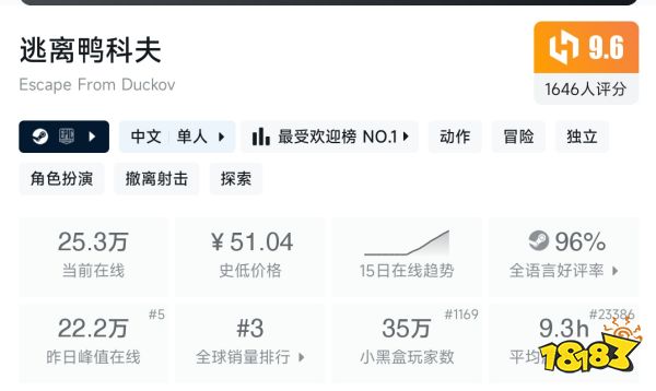在线峰值突破25万!《逃离鸭科夫》创国产独游PCU新纪录