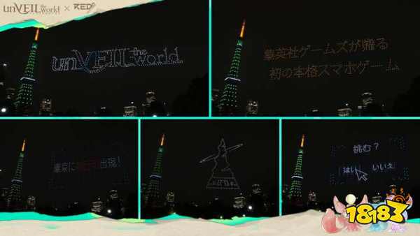 10月16日晚,在东京塔上空举办了以"巨塔启程"为主题的无人机表演。500架无人机勾勒出游戏中的巨塔与主角,将夜空变为游戏画面本身。以游戏Logo和"登塔冒险"为主题的光影艺术展现了游戏世界观,现身东京夜空的崭新巨塔引起了巨大反响。